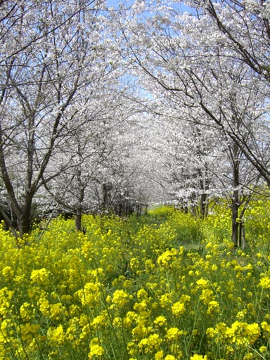 こんなマイナーな場所で、こんな綺麗なお花に埋もれてみたよ…ここは熊谷市小泉(旧・大里町)荒川土手沿い、久下橋の500mくらい西。元の細い久下橋の辺りになるのかな?先週木曜、別府沼公園周辺~深谷駅前と桜を求めて渡り歩き(モチロン車でね)、その次に流れ着いたのはココ。 もともと別の場所に桜を見に行く途中の道で桜並木が目に止まり、あ~ここもいいね! と急遽お立ち寄りしたらば、期待を遙かに越えた風景が広がっていたのさね! 菜の花まであるじゃんあまりに綺麗なので、つい菜の花畑にズカズカ入って行ったら…うわ~っスカート黄色くなっちゃったよ(^^; ま…まあいいか。菜の花まぶしいねえ…荒川土手の南側に菜の花が多いのは去年も見てたけど、(そして去年もドロボー草くっつけたけど)、桜と一緒に見られる、こんなお見事な場所もあるんだね~。ちなみにココは、切所沼という沼のほとりでもあるのね。昼間は釣り糸を垂れるオヤジのたまり場この日、半日だけ空いてた私…ここからさらに、大急ぎで2ヶ所回るのだーーー!!また明日へ続きます♪