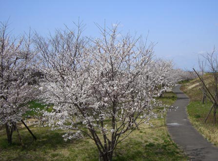 まだ近年できたばかりの新しい公園、桜がもっと育つのが楽しみ♪昨日の続き…切所沼から、もっと旧・大里町エリアに深く入り込み、次なる目的地は…久下橋の辺りを越え、大里の農産物直売所も越え、カーブも越え、和田吉野川にまたがる玉作橋を渡ってすぐ右折して少々。土手沿いに広がる桜リバーサイドパークへ!大きなすべり台もあるから、お花見も子供さんの遊び場としてもグー。一番上の写真は、すべり台に上って撮ったもの。 土手沿いの道に、長い桜並木…まだ木が若い桜、これがもうちょっと育ったら、かなりイイ感じの桜並木になるよね。土手に上ると、ココも菜の花が綺麗♪ このへんは本当、川沿いの菜の花が多いね。向こうにぼんやり見えるのが、さっき渡ってきた玉作橋。私こういう所に行くと、つい「あっちから見たらもっと綺麗かな~」なんて思いながらへんな所に歩いて行っちゃったりるんだけどね。 この時もつい夢中で歩いてたら、何やら急に脚がチクチク…えっ痛い痛い! 何?うあーーーっ!またこんなのくっつけちゃったよ!!ちょっとコレ、ストッキングに引っかかって、なかなか取れないんですけどーー(^^;ムリヤリ痛い植物を引きはがし…このストッキングも今日限りね。でも、めげずに最後は、最盛期の熊谷桜堤を見ておきましょ…ただし、菜の花の花粉で微妙に黄色くなったスカート(昨日の日記参照)と、こわれかけストッキングなので、知人に会わないように気を付けて…と(^^;見頃の晴天、駅からまっすぐの入口付近は人がいっぱい! …なので、東の端っこのほうを歩いてみたよ。 さすがに壮観な眺め♪午前中だけで 別府のお寺と神社 → 別府沼公園 → 深谷駅前 → 書いてなかったけど自衛隊前と運動公園前を通って桜ドライブ → 切所沼 → 桜リバーサイドパーク → 桜堤…という激しい桜見物&撮影は終了!これで 「午後は昼寝していいよ」 ってのなら最高なんだけどねえもう末期を迎えつつある桜の花。 市内では旧・妻沼町方面に全然行けなかったのが残念!また来年だわ。 これまで載せ続けた熊谷市近辺の素敵な桜の名所は、カテゴリ 「その他熊谷情報」 「熊谷近郊情報」 から御覧下さい♪おおっと、まだ自衛隊の桜を載せてないぞ! 1日置いて明後日からは、国家機密スレスレ(嘘)の熊谷自衛隊特集よーー♪