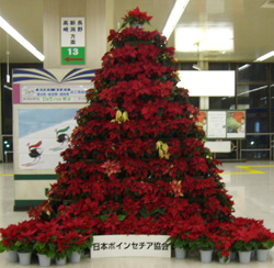 ポインセチアでできたツリーが!