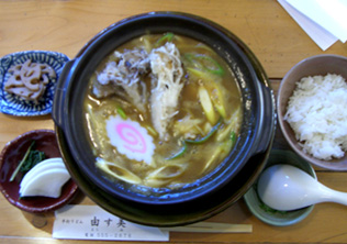 この日の日替りは カレー鍋焼きうどん …ご飯とお菜がついて800円ちょい。