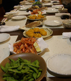 さらに 薩摩揚げ、サラダ、揚げ出し豆腐 が出され、 ビールや日本酒、カクテル