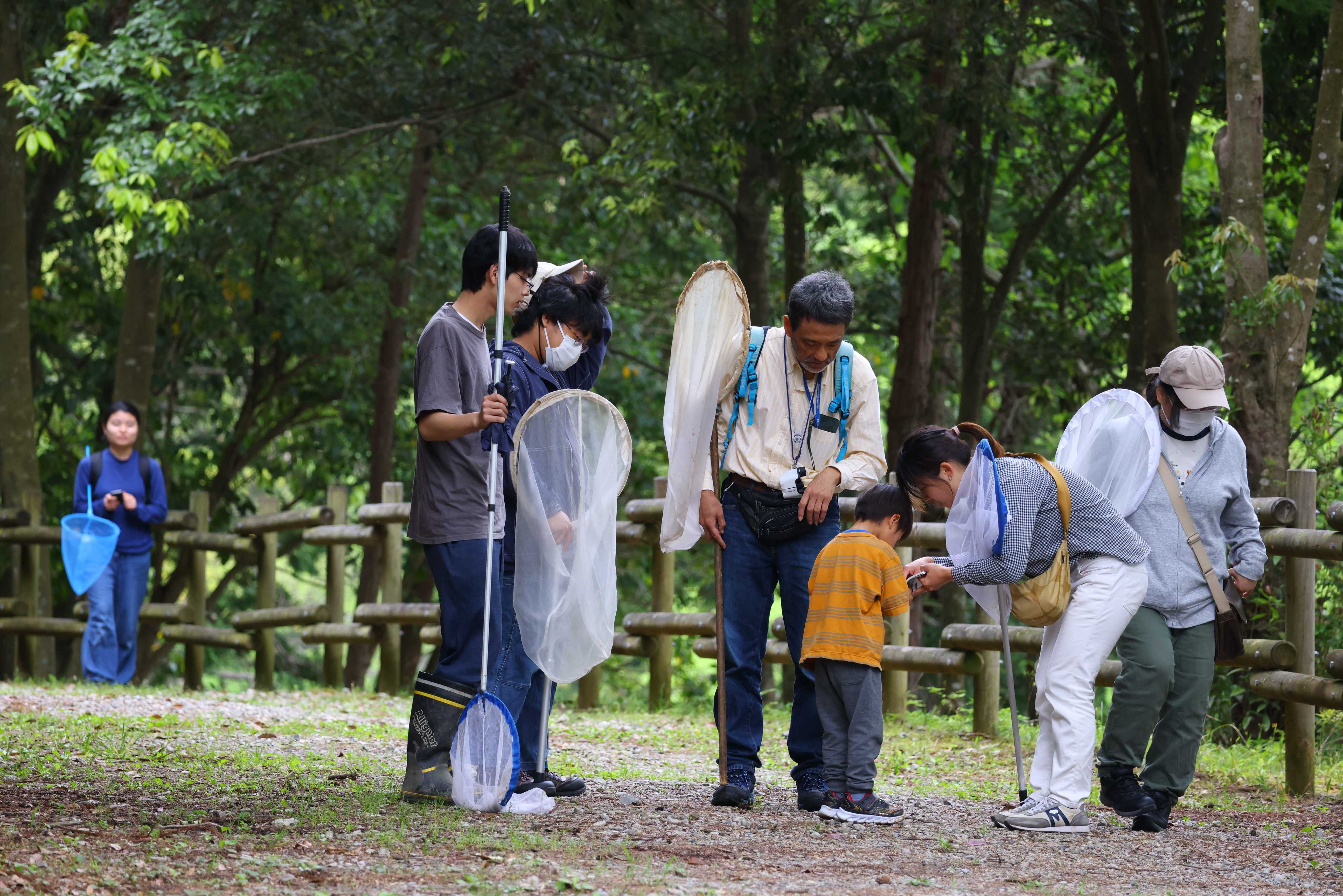 みなさん気合が入っており、ほとんどの方が捕虫網をもってきてくださっておりました。心配していた雨には降られず、観察会が終わる頃にパラっと降ってきました。