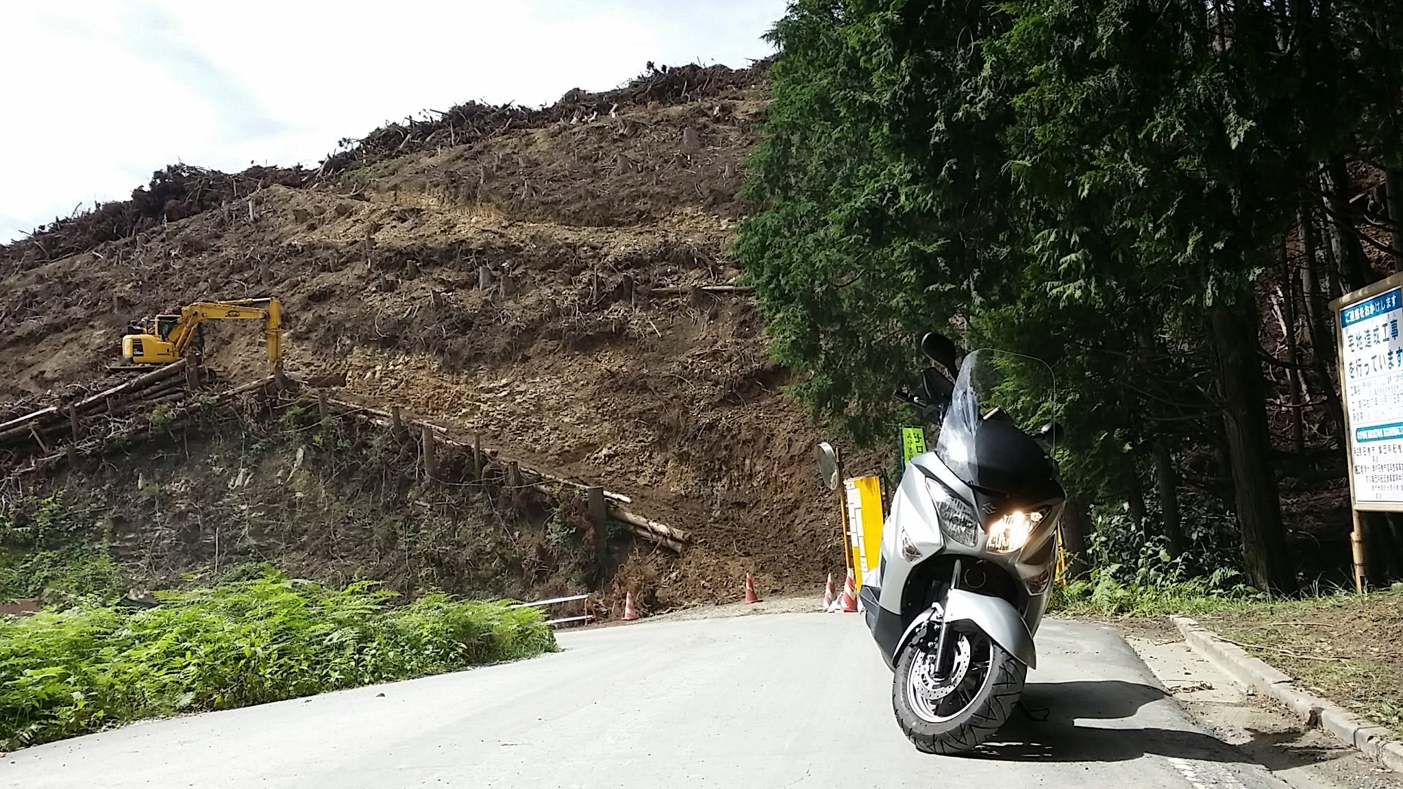 連休最終日。先月末からいろいろあったので、気分転換に走りにいったのが行けなかった。自分への戒めのために、記録を残す。初コースだった七北田ダム周辺で、休憩しようと左側の空き地に寄ろうとしたら…県道下り右カーブの少し手前にあるアスファルトの空き地。減速したら、今までにない感覚で、バイクが流れていった。雨天時のマンホールスリップとも違う、車で突然凍結路があってコントロールが効かなくなった時と同じような感じ。バイクは、アスファルトの空き地へ横倒しで流れていき、自分自身も空き地へ。左足がバイクの下敷きに?車道上だったらと思うと、これが不幸中の幸いか。バイクを起こして、破損状況を確認、エンジンは大丈夫そう。外装は、いずれ交換かな。少し冷静になると、左足首と左肘が痛む。痛みが引くまで休憩していると、路面に薄く砂があって、滑った後を見つける。初のバイク事故がこれぐらいで済んで良かった。コンマ何秒の間に、いろんな事を考えているんだな。自走して帰宅後、左足親指付け根に黒血を発見、靴も酷く擦れていた。手袋左と上着にも穴が空いてしまった。2014/09/27追記ボタニカルに行くついでに、転倒現場を見に行く。意外と直線だったのね。まだ路面に砂利が残っていた。