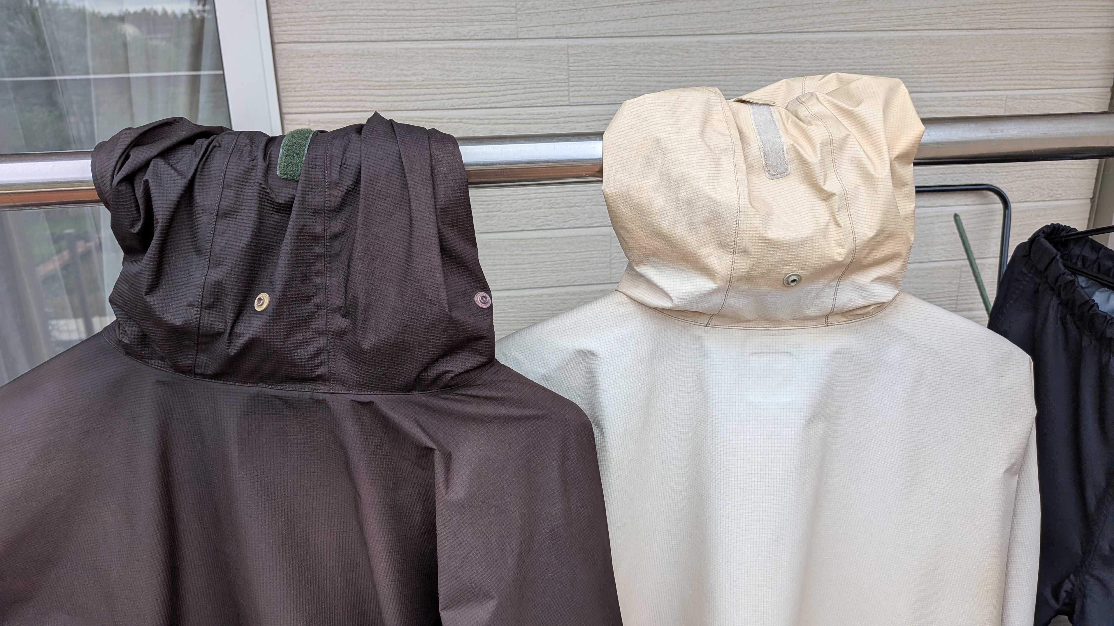 偶然か、使用中のレインダンサーも9月に買っていた。初転倒で穴が空いてしまい、わずか4年足らずで引退か。イタイ出費。 表面の撥水は玉のように転がらなくなっていたけど、 ノーメンテでも防水は生きているし、透湿も上々。 まだまだ買い替えの必要はなかった…モンベルのアウトレット店舗で探すと、レインダンサーの型落ち品を発見! ここは他製品に冒険せず、同一シリーズで攻めていこう。2025/08/31追記2014年9月にアウトレット店で型落品2013年モデル?を購入してから11年。茶系の初代は劣化が目立たないが、こっちは色落ちが目立つ。でも、まだまだ使えそう。