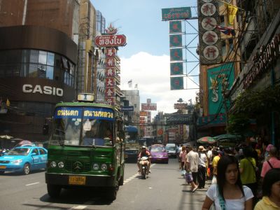 さぁ~たっぷり楽しんだウィークエンドマーケットから戻り、今度は宿泊してるホテルからバスで10分程の所にあるヤワラーへ行って来ました。さすがは中華街!バスが門をくぐるとその先は鮮やかな色で飾られた街並みが見えてきます。しかし凄い人です。歩道から人が溢れ車道にまで はみ出してしまってますね~その原因はこちら歩道を占拠してる露店なのでした~バンコクではよくありがちですが、ここは人がすれ違うのがやっと、立ち止まる人がいると先へ進めなくなってしまうのですさぁ~これからヤワラー探検の始まりですちょっとだけお付き合い下さいな~