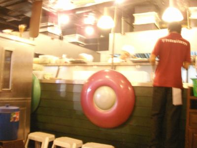またまたMBKにやって来ました今日はこの辺りで土産の買い出しです。MBKの最上階にはアジアン雑貨の店が沢山あり見てるだけでも楽しめるのですよ~写真を撮ろうと思ったらバンコク市内のデパート、ショッピングセンターはテロを警戒してかガードマンが多く、ここMBKもエスカレーター前や通路などに何人も立っており撮れる雰囲気ではなかったのでしたちょっとした雑貨を買いさ~て昼食タイムです!MBKの1階フロアーにあるタイ料理店に入って見ました。人気の店らしくタイ人で混み合ってます。店の中は船内をイメージした造りでちょっとオシャレ~でしたよさぁ~料理が出てきましたシンプルにカーオパットにパッタイです。タイ米のチャーハンはやっぱり美味いですな~パラパラ御飯にはピッタリですパッタイもシーフード入りでgoodでした