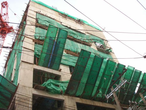 バンコクの街を歩いてると、あちらこちらで建築中の建物を見かけます。しか~し、その周辺は危険なエリアでもあるのですよ~日本の様にまわりを足場やシートで囲った建築とは違い、所々に落下防止のネットが張ってあるだけなのです!下から上を見上げるとこんな感じなのです。周辺には上から落ちてきたと思われるコンクリート片などが見られるのですよ~怖いですね~恐ろしいですね~もちろん警備員なんていません!建築現場の前を通る時は上を見ながら通りましょう・・・