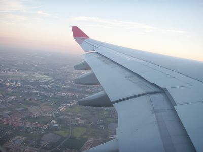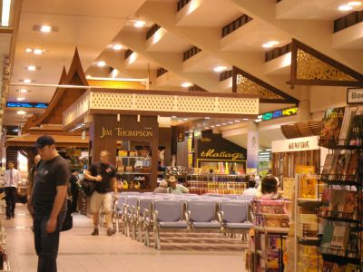 さぁ~長かった?バンコクの旅もとうとう帰国日を迎えてしまいました。朝3時にホテルをチェックアウトしてドンムアン空港へ向かいます。(ちなみにこの日記はスワンナプーム新空港開港前のものです)到着した時はワクワクですが出発の時は淋しいものがありますね空港内にはタイシルクで有名なジムトンプソンも入っています。まだ早朝なので、開いてる店もまばら・・・人も全然いまへん!出発ゲートへ向かいます。私が乗る米系エアラインはセキリュティが厳しいので早めに行って最終チェックを受けなければならないのです。さぁ~見納めのドンムアン空港です。この3週間後にスワンナプーム新空港が開港したのでした。しか~~し、問題続きの新空港!修復工事の為、結局またドンムアン空港が再開され、現在は一部の国内線で使われているのですよ~。ちょうど、陽が昇り始めました。翼に反射して綺麗です。また今日もバンコクのエネルギッシュな1日が始まるのですね~さぁ~これから6時間のフライトです。機内での楽しみと言えば?・・・