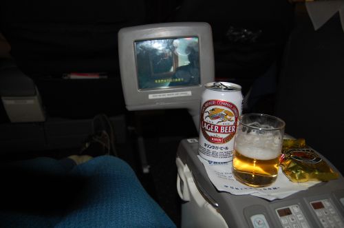 バンコク出発までの約2時間、成田空港内のラウンジでまったりと過ごしましたラウンジ内はフリードリンク!ソフトドリンクを始めアルコール類が各種揃っています。真っ先に目についたのは、ビールサーバー冷蔵庫から冷えたグラスを取りだし、マシーンにセットすると自動的にグラスが傾き、ビールが注がれ最後にクリーミーな泡が出てくるのですよ~、早速いただきました下手なビアホールの生ビールより旨いかも!!一気に飲んでしまい、こちらは2杯目しか~~し、つまみはこの様なスナックしかないのでしたこちらのラウンジ、席によっては電話が備え付けられていて都内への通話は無料との事!インターネット環境も整っています。こちらには日本をアピールするかの様に酒樽の置物も飾られています。でもアルコール類の中に日本酒はありませんでしたが・・・さぁ~機内でもアルコール漬けになることが予想されるので?最後はジンジャエールで締めですこの後、いよいよ機内へ・・・