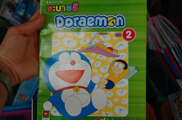 さてチャオプロンタラートには様々な店が軒を連ねていますが、ある文房具屋の前を通りかかったところ子供達の土産に良さそうな「塗り絵」を発見!ドラエモンの塗り絵であります値段は手頃、かなり安っぽい紙でいかにも~と言った感じの怪しさいっぱいの塗り絵ではありますが・・・中を見ると一応はちゃんとした塗り絵のようです。しか~~~~~し、ページをめくっていくと・・・ナ・ナ・ナントジャイアンが既に塗られているではありまへんか~しかも頭は金髪!口の中は緑、手は青・・・恐ろしいジャイアンであります。この店には店番をしてる子供がいたのでもしかするとその子の仕業かも?・・・まぁ~何とも笑わせてくれた塗り絵でありましたやっぱりタイですなぁ~