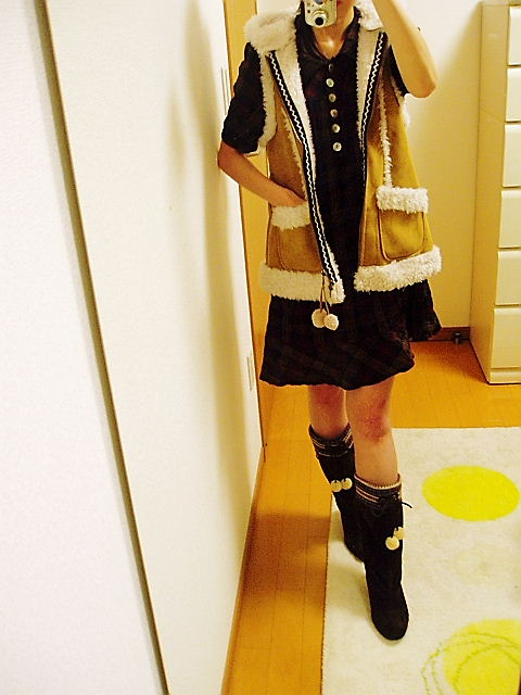 ・・・ってなわけで、しつこい・くどい・うざ風味パート3の始まり始まり~※ブーイングはご勘弁(爆) 今日は最初に、Alto Libroさんで購入したKOOS風ブーツの更なる情報を、悩める子羊達の為に(爆)ブーツ単体のアップ画像を撮ってみました。ストンとしたシルエットはまさに私の求めていたシルエットそのもの!足をブーツに入れた時のふんわりソフトな肌ざわり(?)は本当に気持ちいい!インソールもしっかりしてて、本当に履き心地満点これは、7月下旬の予約特典の中敷リゲッタルーペです。入れなくても十分履き心地いいけど、入れると土踏まずのところの隙間がなくなって更に履き心地がいいっ!!!かかと~土踏まずのところまでの中敷なので、つま先がきつくなる事もありませぬ。(※裏側には、ちゃんと固定用シールも付いてます!)さぁさぁ、今ならポイント10倍だよ!さぁ買った買った~!!(押し売り)でも、このブーツは本当にお勧めですわよ。冗談抜きでブ━━━━∵;(;:゚:鑾;゚;,);:∵━━━ッ!!話はかわって・・・今日は日曜日に辿り着けなかったアベイルへ行ってきました狙ってるブツ(何)を買いに行ったものの、ブツの在庫、Lサイズのみ一応試着したら、マタニティ状態だったので諦めました(涙)そのかわり!別のかわいいワンピ発見ダブルガーゼで着心地もいいし、ポケットにリボン付いてたり、色々と作りが凝ってる!刺繍も、私はかわいいと思う一方、ガキくさいっちゃ~ガキくさい気がしなくもない(爆)しつこい位にKOOS風ブーツも一緒に着画(爆)袖まくりができる装置(?)みたいなやつも付いてて、表と裏のチェック模様が違うから袖をまくってもかわいい前にオリーブで買った、2Wayベストの画像消しちゃったもんだから、ここで再紹介(汗)内側のフェイクファーの方を表にしたバージョン。このオリーブベスト、かわいくって本当に気に入っていますそんでもって、アベイルでお買い物した後は、掘り出し物を探しにリサイクルショップへ。ふぉっふぉっふぉっ、あったよ掘り出し物!どどーーーーーーん(汗)サスペンダー(200円)、russetのミニボストン(3990円)、russetのショルダー(2000円)、CA4LAのニット帽(1000円)、しめて8190円ラシットは昔から大好きで、バッグやらキーケースやら小銭入れやら、結構色々と持ってるけど、最近のラシットのバッグは昔と比べて大分デザインが変わってしまって・・・絶対昔のデザインの方が良かった!!!(きっぱり)だから、最近はめっきりラシットから遠ざかり、手持ちのラシットバッグがどれもこれも薄汚くなってきた矢先・・・まさかまさかのリサイクルショップで昔バージョン発見!!し、しかも2点もあるぞウォーーーーーーー!!!(叫)どっちも新品みたく綺麗で、かなりかなり素晴らしい掘り出し物CA4LAのニット帽は、耳らへんのとこにラインストーン付の牛革製のお花が付いてたり、ひもんとこも小さいポンポンやら、木の実みたいなアクセ(?)が付いてて、めっちゃかわいくて一目ぼれ さすがCA4LA!ディテールに凝りまくってるせっかくなので、今日の着画にはラシットのバッグも一緒に合わせてみました帽子の着画は・・・ドラえもん級のまん丸デカ頭をさらすだけなのでナシ(爆死)