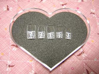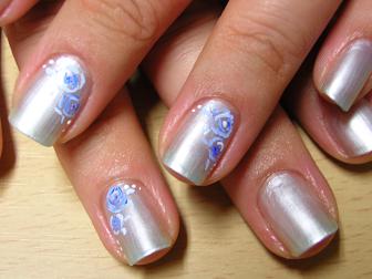 なんパターンか作ろうと思ったのだけれど・・・ 時間が無くてこれだけ(笑)クリアのパウダーににラメを混ぜた物でスカルプを付け、エアブラシでホワイトのバラのアートにしようと思っています。ストーンは花嫁さんの希望次第ですね♪ネイルの本に載っていて以前から可愛いなと思っていた物を真似させて頂きました。