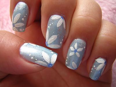 今週のネイルです☆・・・っと言いたいところですが・・・このネイルをした次の日に風邪でダウンし、10日ほど寝込んでしまいました(泣) 久々にこんなにヒドイ風邪をひきましたよ~!病院でも「え?38.5度!?扁桃腺ないよね~?」とビックリされ(笑)(数年前、扁桃腺がハレて1週間寝込む事態が毎月あったので扁桃腺手術を受けて取りました)インフルエンザ検査はされるはで大変でしたよ~!高熱のわりには辛そうに見えないらしく・・・(毎回)「熱高いけど辛そうに見えないね」と言われ・・・(いや、十分辛いっす!)10日で4回病院に通い、採血されるわレントゲン撮られるわ抗生剤の点滴と注射されるはで大変でしたよ~(泣)私、血管が出にくいらしく、手首に点滴&注射されましたよ~(手首すっごく痛いの~)と、まあ・・・今回の風邪ネタ(笑)話したい事沢山あるのですが、この辺で・・・まだ全快していないんですけどね☆皆さんも風邪には気をつけてね~☆ 話しは戻って・・・もう今週のネイルじゃないけど、今週のネイルはエッシー#376(ブルーベリーC)の上にティンズ005ジ・アクアマリンを1度塗りし、アクリル絵の具でお花の絵を描きました♪ 実は、今回は写真が無いのですが、うちの母にも同じネイルをして親子でこのネイルしてました☆