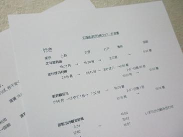 それはみかん&まろんパパの一言から始まる・・・あまりの仕事の忙しさに疲れたパパは現実逃避・・・「もう、仕事ほっぽって旅行にでも行きたい( ´Д⊂」「北海道に行って、ウニ丼が食べたい!」「一緒に行こうよ、日帰りで・・・」この日帰りがポイントです(笑)計画書作りましたよ(彼がね。笑)ミホ彼とパパはお友達☆そして、ミホとパパは仕事仲間☆なので、パパには2人とも仲良くしてもらってます(*^-^*)だから旅行も3人での予定☆(みかん&まろんママにおこられそうですが・・・汗)北海道に行くならやはり「北斗星」♪北斗星で行くウニ丼ツアーかなりおバカ・・・贅沢な旅行計画です( ̄ー+ ̄)早速パパに渡してきましたさてさて☆実現なるでしょうか?(笑)でも、こういうのは計画を練るだけでも楽しいから良いのです☆