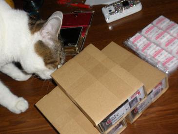 今日届きましたヾ(≧ー≦)ゞ DECOチョコ~ロビン「何?コレ~」じゃ~ん \(´▽`★)/ DECOチロルチョコですチビ「ちっ!俺のは一個も無いじゃんか!」ゴメンね~チビ(´-ω-`;)今回はロビン1才の誕生日記念のDECOチョコなのよ~ロビンと九死に一生の出会いをしてもうすぐ1年・・・早いなぁ1年(´。` ) =3 うちに来て2日目うちに来たときはまだよちよち歩きお腹をすりながらやっと歩いていたっけ・・・哺乳瓶でミルクを飲ませティッシュでポンポンと刺激してオシッコをさせ・・・大変だった・・・今となっては懐かしい子育て(つд;*)そのニャンコが今ではすっかり大きくなって・・・あ、スイマセンもう少し親バカぶりに付き合って下さい(笑)前々からDECOチョコ作りたいと思っていたので今回ロビンの誕生日に合わせて作ってみました☆配ろうと思って3箱用意(笑)まぁ1箱は田舎の叔母に送ろうと思って田舎のワンコとニャンコ達にしたんですけどね☆コチラがそのDECOチョコミホのおススメはにくきゅうチョコです\(≧▽≦)/にくきゅうチョコ皆に大人気です(笑)そして、叔母に送るチョコがコチラ前に買っていた袋が大活躍☆まるでこの為に買ったようにぴったり♪皆に配ったらほとんど残りませんでしたよ・・・