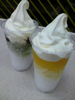 ハロハロの季節や~\(≧▽≦)/ハロハロが大好きなミホです♪只今の時刻22時30分今夜もなんだかジメジメムシムシ暑い  ̄Д ̄ そんな時はハロハロを食べに行きます☆(左)宇治金時 (右)ゴールデンパイン 新しく「ゴールデンパイン」がデビューしてました☆さっそく食べてみる( ̄~; ̄) ムシャムシャ うん 美味しい~やっぱ暑いときにはコレだね(*≧▽≦)bb さて、今年は何回ハロハロのお世話になるでしょうか・・・