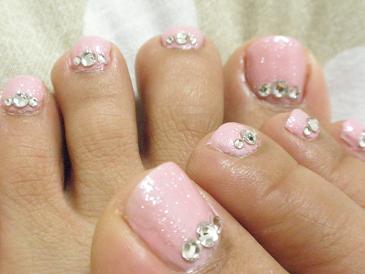 宝くじがハズレる夢を見てしまいかなり凹んでいるミホです・・・さて☆気を取り直してぺディ画像をカラーは エッシー #504(スキン・ディープ)その上にピエヌのラメを重ね塗りしてラインストーンのクリアをのせました☆