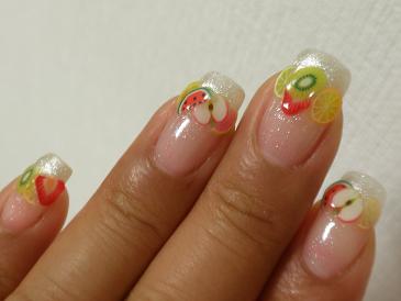 いつのまにかすっごい爪が伸びたな・・・と思ったら、前回からもう1ヶ月も過ぎてたよ(⌒_⌒;夏っぽくフルーツネイルにしました☆1年に1回しか使われないフルーツ棒・・・写っている他にもまだあるというのに使い切るまでにいったい何年かかるんでしょうねぇ ̄ω ̄A