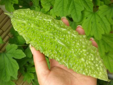朝、玄関先でボーっとしてたら(笑)以前ゴーヤの種をくれたご近所の奥様からもぎたてのゴーヤをもらいました☆いいなぁもうこんなに大きくなってんだーどれどれ☆ 我が家のゴーヤは?とワサワサの葉っぱをかきわけてみると・・・あった!!(人´∀`)ちっこいのが(笑)収穫まではまだまだですね~でもうれしー♪これからどんどん大きくなっていくのが楽しみ(∩_∩) さて、ゴーヤといえばやっぱゴーヤチャンプルーですか?ゴーヤの調理初めてなんですけど・・・がんばります