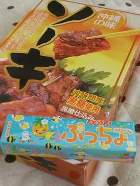 函館から届いたとうもろこしを昨夜ぱぱちゃんにお届けしてきた☆深夜(ぱぱ時間)に・・・(笑)そしたらぱぱちゃんに沖縄土産をもらった♪先月末に家族で沖縄に行って来たんだって~沖縄か~沖縄も良いねぇ(´∀`) 1度は行ってみたいね☆ぱぱちゃんお土産ありがとうございました♪深夜におじゃましましてスミマセン出来たら今月飲み会を開きたく・・・ではまた連絡します!
