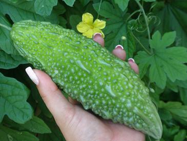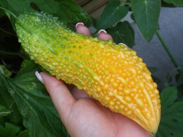 先日、前にゴーヤをいただいたご近所の奥さまに「ゴーヤ美味しかったです~」とお礼を言ったら、またもらってしまった♪お気に入りの味噌ゴーヤちゃんぷるを作って食べました☆美味しかったっす( ̄ー+ ̄)と、もらいゴーヤで生活しておりましたが(笑)我が家にもやっとゴーヤが!!収穫できるサイズになりました♪とったどー!ゴーヤ初収穫です☆ 育てたのも初めてだしこんなにゴーヤを食べたのも初めてしっかーし!もう少し大きくならないかな~なんて欲深くしていたら・・・もうひとつは黄色くなっていましたo(TヘTo) くぅ 昨日までは地味なミドリ色だったのに今朝見たらど派手にお色直しされておられました・・・ゴーヤって黄色くなり始めると早いのね( ̄ー ̄;みるみるうちに黄色くなっていくんですもん・・・慌ててもうひとつのゴーヤを収穫しましたあ~ビックリあ~ショックー初収穫ゴーヤは今夜実家にお泊りなので実家に持っていって兄ちゃんに食べさせてあげようかとおもいま~す( ̄ー ̄)お気に入りの味噌ゴーヤちゃんぷるでね☆