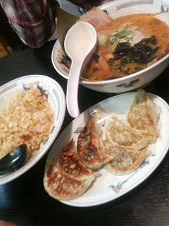 今日はもう疲れたし、ダーリンの希望もありチャーシュー力(三芳店)で夕飯です☆限定10食らしいチーズ餃子・・・お味は・・・チーズ(笑)普通の餃子より具が少なくてチーズが入ってますまぁほとんどチーズのお味しかしないのでそれなりに美味しいです☆(チーズ好きにはいいかも?)海老炒飯も普通に美味しいですダーリンは今回(画像のラーメン)「闘魂辛みそラーメン」を頼んでましたミホは食べ物に関してはあまり冒険しないほうなので「さそり固めブッチャーみそ」ふぅ(A;´・ω・) 最近腹八分目で抑えていたのに久々に苦しい!抑えてた?(ー△ー;)えっ?どこが?!!!