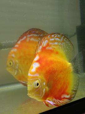 我が家の初ディスカスペア☆今回3回目の産卵をしました前の2回はちょっと環境が悪かったせいか孵化まではしたのですが体着まで行きませんでした・・・今回の3回目の産卵も孵化までは順調でしたが前回同様ディスカスミルクの分泌(黒化)が確認できずまたダメかなぁ(´ω`。)と思っていました・・・が!体着してくれましたO(≧∇≦)Oやった!数はだいぶ減りましたけど・・・両親の周りを元気に泳ぎ回っています♪いつかはディスカスの子育てを見てみたい!と思っていたので嬉しいです(*^ワ^*) 孵化して稚魚が泳ぎだしたとたんに人が近づくと怒るようになりましたが稚魚が体着して落ち着いたのか今は怒らなくなりました(A;´・ω・)よかったホッとひと安心と言ったところでしょうか(〃´o`)=3 フゥ これからが楽しみです♪