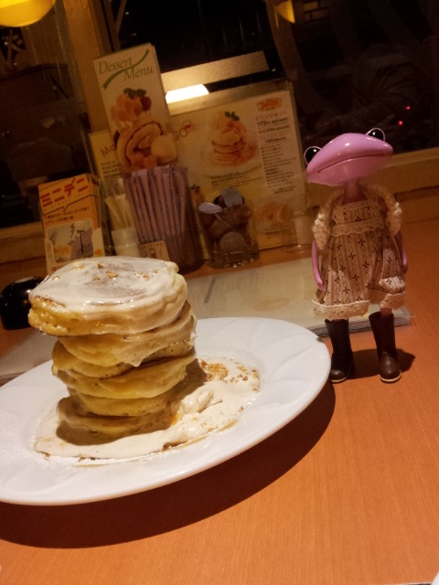 昨夜、姪っ子ちゃんがバイトしている某デニーズへ食べに行って来ました☆タワーパンケーキ食べた方のブログを見ると「だいたい10cmくらいの高さ」と書いてありましたが・・・作る人によって高さも形もまったく違う物になるのでご注意を!(笑)私が食べたのは残念なやつお客がほとんど居ない時間に行ったのにな~
