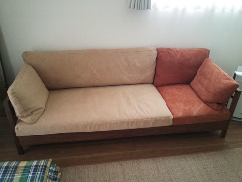 今日、主人が休日なので、朝はゆっくり~♪なんて思っていたのですが。。思い出した!今日は、ゴミの日だった~~というわけで、気持ちよさそうに大口を開けて寝ている主人を恨めしく見ながら、普通に起きました。主婦に休みはありませんね。。。さて、今日はわが家のキッチンをご紹介させていただこうと思っていたのですが、やめました。その前に、先日チラッと紹介させていただいたわが家の大物(わが家では大物なんです(汗))を紹介させてください。こちら広松木工さんのRIPOSOというシリーズのソファです♪こちらのソファ、受注生産でございまして(マダム風w)、届くまで3カ月半程かかりましたのでございますのよ(オーホホホホ)←すみません、ふざけました。ソファというものは、本当にピンキリなんですね。1万円台のものもあれば、数十万円もするもの、さらにその上の手の届かないソファの数々。広松木工さんのソファは、このソファのシリーズ以外にもCIELOシリーズやFREXシリーズなどがあります。上にのっかっているクッションたちを全部とると。。こうなります幅は、一人用の84センチから217センチまで5パターンから選べます。もちろん、オットマンもありますよわが家は、夫婦共に高身長なので、横になった時にちょうどよい3人掛け用の196センチに決めました。196なんですけど、サイドの木部が一般的なソファに比べて細いので、より幅があるように感じます。木材アップ観葉植物が似合います♪木材は、メープル、ウォールナット、チェリー、オークなど8種類から選べますし、クッションの張地もナチュラル、ベージュ、オレンジ、ブラックなど色々ありますし、お値段はドンと上がりますが、黒革、ヌメ革もあります。わが家のソファは、ウォールナット材の張地はベージュとオレンジです。張地は帆布を使用しているので、とてもしっかりしています。さらに、一度ウォッシュ加工されているため、洗っても縮みませんとお店の人がおっしゃっていました。そして、ここがポイントなんですが、自宅で洗濯ができる!洗濯機に入れて丸洗いができるんです。これです、これ。これが一番大事なんです。張地が洗えるソファはありますが、クリーニングに出さないといけないことが多く、自宅で洗えるなんてなんて。。。すばらしい!!そしてそして、わが家のように2トーンカラーにも出来るので、シンプルに同色で統一させて他にクッションで色を遊ばせてもいいし、2トーンにすれば他にクッションを置かなくても、これだけで存在感がありますね。こんな風に、気分でお色を入れ替えても楽しいですよクッション部分は、座る部分に2つ、背もたれ部分に2つ、両脇の2つの計6つのパーツに分かれます。座るところのクッションは、こんな風に張地を取り外せます。中綿を出してみました(中綿は羽毛だそうです)わが家は、クッション部は硬めが好きなので、こちらのソファの硬さがとても気に入りました♪雑貨に限らず、家具も本当に出会いですよね。とてもいい出会いをしましたもちろん一生使い続けるつもりです。興味のある方はHPもありましたので、ご覧になってはいかがでしょうか?こんな素敵なフラワーベースに花を活けたらステキでしょうね♪☆6月20日 22:00 販売開始☆iittala (イッタラ)/...数量限定だそうですよ。最後まで読んでいただいてありがとうございました。お手数ですが、こちらをポチッと押していただけると嬉しいです ↓にほんブログ村