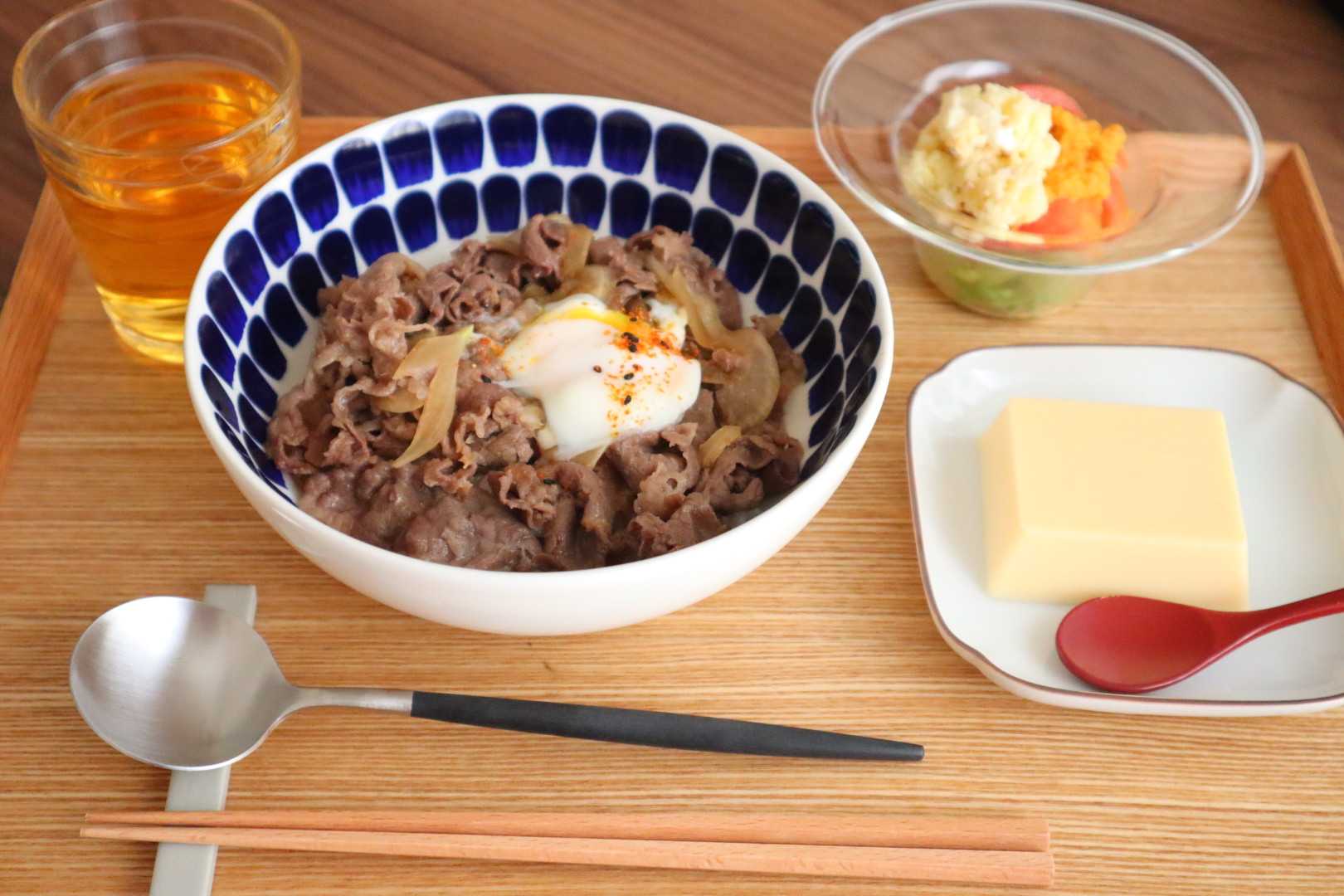 夫の希望で作った牛丼。