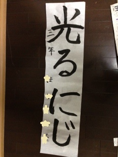 新年あけましておめでとうございます年末年始皆様どう過ごされましたか?私は今年も31日と1日は仕事して~~~2,3日は連休いただきました^^1日は自分の実家に顔だけ出しに行き、夕飯食べてそっこー帰りました。自分の実家だけど、近くに住む妹家族とはうるさくなるからと顔を合わせることもなく・・・お年玉あげたりもらったりするのも一つの楽しみなんだけどね~~兄にお年玉いただき、子供達はニコニコでした老夫婦だけで住んでいるから、大勢でワーワー騒ぐのわずらわしいんだろうねでも、実母ならでは・・・ものすご~~く、厳しいこと平気で言ってきます(笑)「あんたの家ではいつもそうやって暇なし子供に怒っているの? 特にT(旦那)さん。家でも怒られ、泊まりに行っても怒られ、いつかこの子おかしくなるわよ!! 異常よ、異常」・・・・・・面倒だから、そーだね、気を付けるよと言っておきました。長男がまだ小さいころ、こんな発言あったら、まるまる鵜呑みにして右往左往していた私でも、子育ての仕方や考え方って各家庭違うし。たとえ親でも、あくまで参考意見としてとどめておくことにして一線張るようにしています。 きりがないからね。確かに口うるさい私たちですが… こう考えられるようになったのも、ほかでもない子供たちのおかげなんだろうな~~。知らない間にこっちが育てられているような…(笑)と、いうわけで、今年の抱負!?去年は自分のことでいっぱいいっぱいだったので。今年は「家族があかるくなれるように努める」「何事も早め早めに行動」の二つにしま~~す。はたして出来るかしら…(笑)学校も今日から始まりました。昨日必死こいて仕上げた書初め。う~~~~~~ん曲がっているような… 気のせい??次回はもう少し余裕もってやりましょう。今年は笑顔あふれる一年でありますように^^皆さんのご多幸を心よりお祈り申し上げます