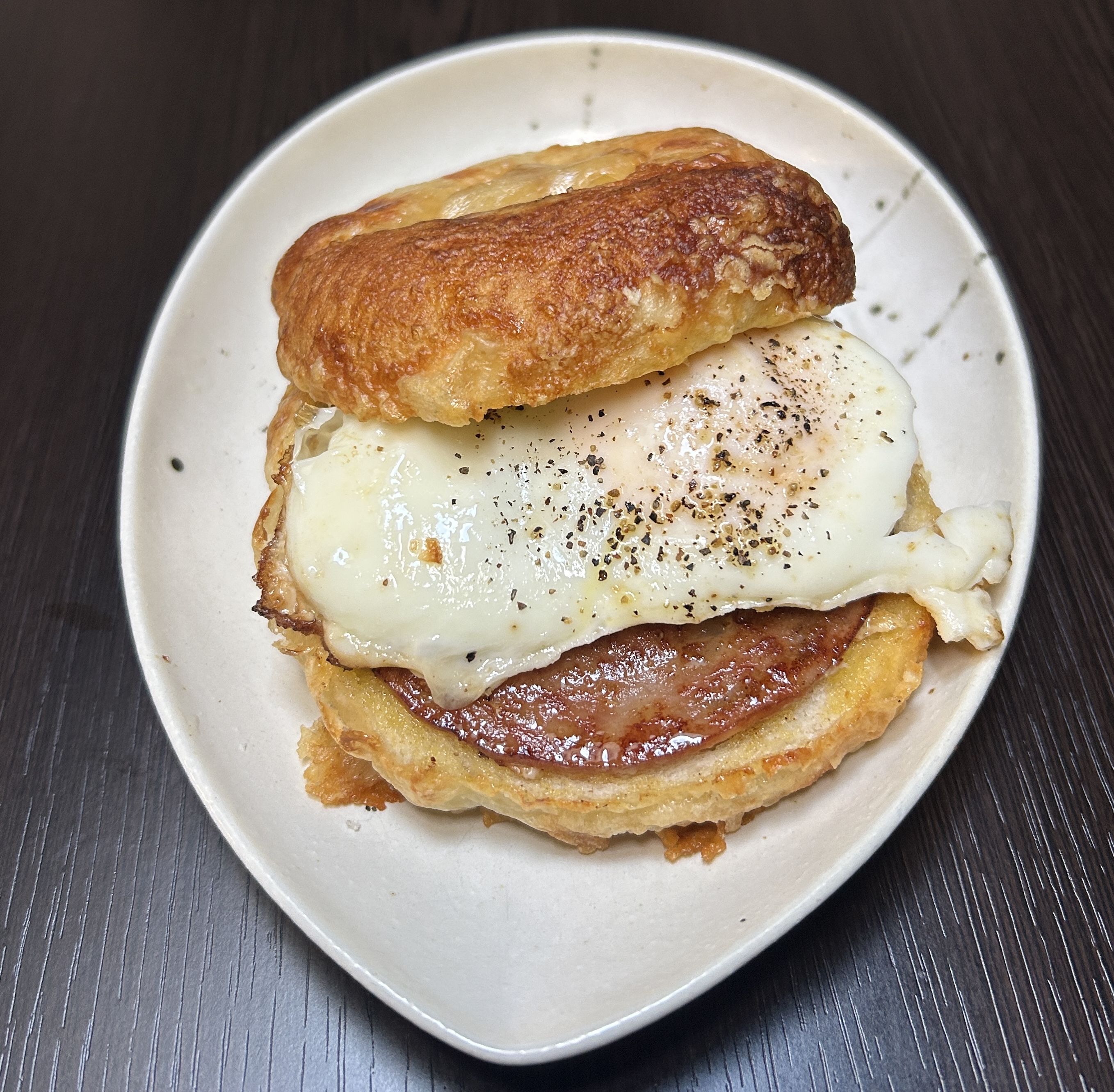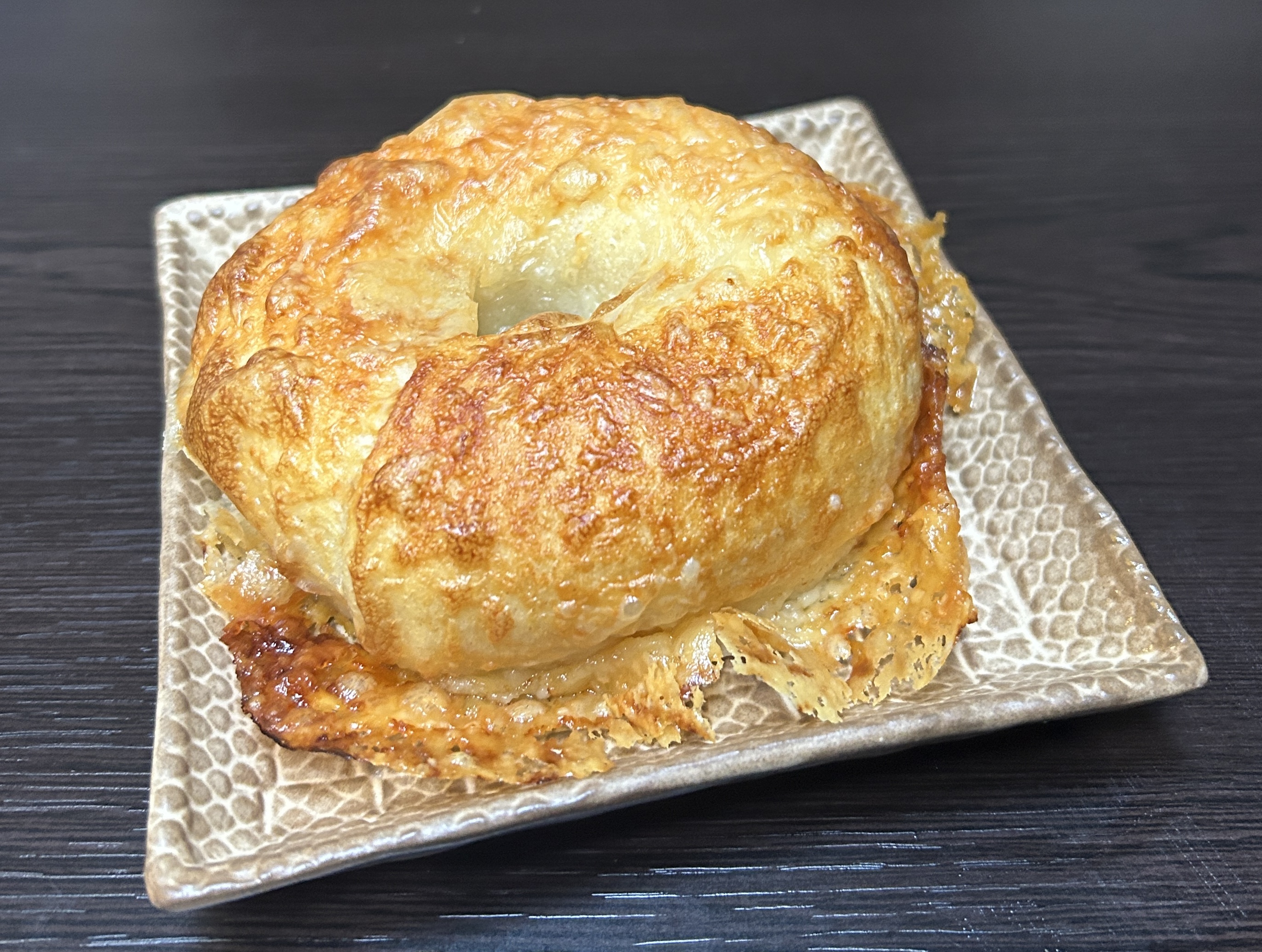粗熱が取れた後、チーズが溶けて鉄板に流れた