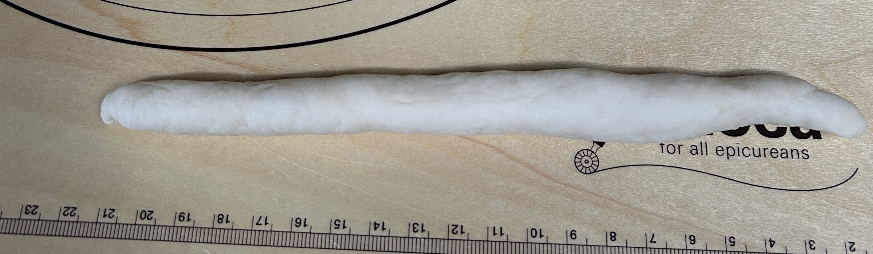 ベンチタイムの後の生地をコロコロと細長く伸ばして