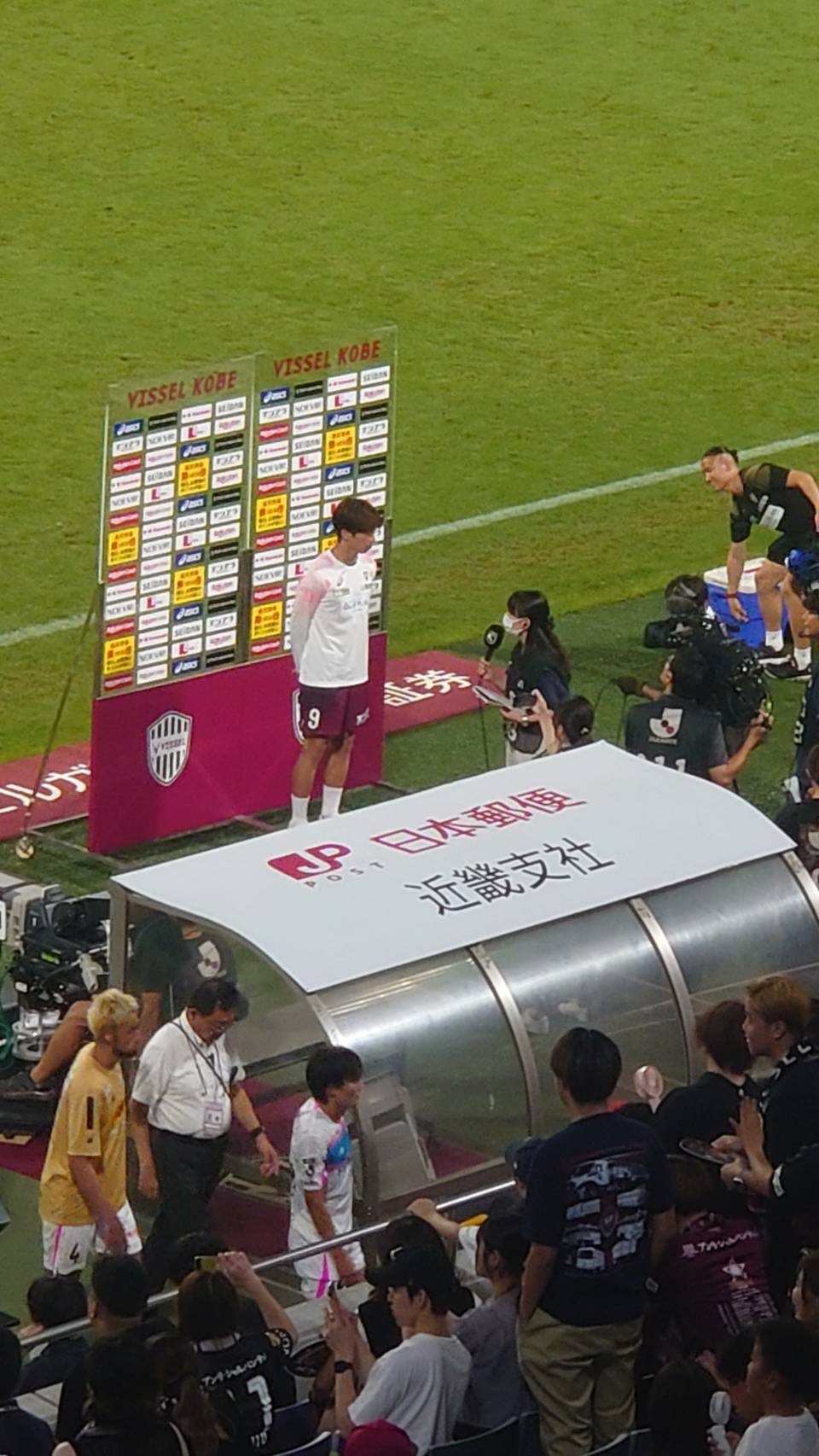 J1優勝はヴィッセル神戸。2連覇おめでとうございました。今年も神戸は強かったですね。大迫選手武藤選手の大黒柱に加えて今年は宮代選手の活躍も大きかった。佐々木選手のここぞの得点力も光りましたね。守備陣も堅かった。2連覇することは本当に本当に大変なことでスゴイことです。どのチームもケガ人が出るとチーム力に影響が出ると思うのですが、神戸に関してはたとえケガ人が出てもレベルの高い代わりの選手がいて、ケガ人の影響というのがほぼなかったような印象でした。今年も強い神戸をたくさん見たシーズンでした。(写真は8月の神戸ホームでのヒーローインタビューの時です。知り合いが撮ってくれました。)私の今季DAZNでの最後の仕事は11/30のセレッソ大阪vs鹿島アントラーズの試合でした。この試合のヒーローインタビューで鹿島の鈴木優磨選手との受け答えに想像を超える反響がありまして、、。あわあわしながら数日過ごしました…笑。結果的にはそのインタビューを見て(大変おこがましいですが)鈴木優磨選手のファンが増えたりプレーを見てみようと思ってくれる人がいらっしゃったらとても嬉しいことです。鈴木優磨選手にインタビューするのは私は初めてで、もう圧が凄いので…正直言いますと怖い印象がありました…苦笑。しかしですよ、試合前に、出場停止になった時にお婆様にめちゃめちゃ怒られてしばらく家に入れてもらえなかったというエルゴラさんの取材コメントがありまして、私、それを事前に知った時に、ええ!実はこの方はめちゃめちゃ優しくて良い方なのでは、、という思いがありインタビューに望みました。そして、インタビューがはじまります。ゴールシーンの振り返りの時に、「適当に打ったら入りました。」とお答えになられた時には、、「ああ、もう私のサッカーインタビューの仕事もこれで終わりかぁ」と頭をよぎりましたよ…。むちゃくちゃすごいゴールについて全然聞き出せてないですもんね。その後の質問をどうしようかと、、色んなことを頭で考えていた流れで、禊のくだりが…私も一瞬の判断でした。私の突っ込みに答えて下さった鈴木優磨選手はやっぱり良い方だと確信しました!はい!すぐファンになりました…笑。鈴木選手は次の最終節でもちゃんとゴール決めてますし、やっぱりすごい方ですね。来年の活躍が楽しみで仕方ないです。この件に関して、なんと!Yahoo!ニュースにまで載せて頂き、、https://news.yahoo.co.jp/articles/cebd90c638b7d8e8ef931182a45771eb1e57c226https://www.tokyo-sports.co.jp/articles/-/325888Xにもびっくりするくらいのたくさんのいいね!を頂き本当に恐れ多いです。皆様ありがとうございました。DAZNのインタビューの仕事については、長いこと携わらせて貰っていますがいまだに緊張せずに聞くなんてことは出来ないですし、あの質問でよかったのか常に自問自答の日々ですが、、選手監督に失礼のないよう、サポーターの皆さんが聞きたい言葉を引き出せるようにこれからも頑張ろうと思います。今シーズンもありがとうございました。