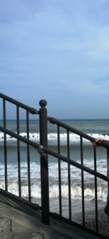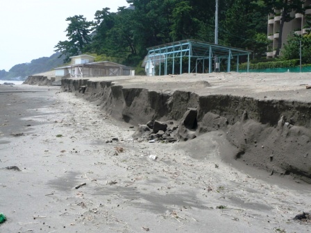 荷物を預けて外を散策してみることに。海岸の砂がこんな風に削られてしまっていました。