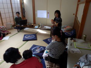 30日は「赤ちゃんのお口の勉強会」でした。歯や噛みあわせのことや歯磨きのことだけではなく、母乳のこと、ハイハイのこと、唾液のこと、ほっぺたのこと、舌のこと生活のこと、ふれあいのことなどたくさんのことをお話していただきました。口の中の話だけでなく、心がほっとするわらべ歌を教えていただき、中田先生が歌うわらべ歌にあわせての自己紹介となりました。かわいい松ぼっくりもこの日のために用意してくださり、みんなのお土産になりました。(ちゃんと消毒済みのかわいい松ぼっくりです)なんともアットホームな勉強会だったんですよ。(左・竹中先生(小児歯科医) 右・中田先生(歯科衛生士))噛むことも学習して習得するそうです。私たちは何の気なしに噛んでるように思っていますが、これも赤ちゃんのときから練習してきたものなんです。それから、舌ってすごい働きをしているのも初めて知りました。噛むことや舌の使い方など機能は育てていくもの、だそうです。その機能は小さいときほど、普段の生活の中で気をつけていればたやすく育つもののようです。(ただこの「普通の生活で気をつけること」を教えてくれる歯医者さんは少ない。 だから、私たちはたいていの場合、気をつける箇所を知らずに過ごしています)大きくなってからその機能を直そうとすると大変な労力やお金がかかりますよとおっしゃっていました。人間が成長していく中で、口の中のことも、体のことも、習慣のこともみんな同じなんですね。「小さいときに学習するとたやすいが、 大きくなって修正するのには、その何倍もの力が必要になる」私が前から何度も言っていること、「3歳までは子どもが望むことをしてあげる」そんな子育ては子どもの方も「私の僕の味方になってくれるお母さんの言うことは、 私の僕の不快になることはない。」とでも思ってくれるかもしれません。いつも「後でね」「チョット待って」の言葉が多ければ、子どもはいつも欲求不満。お母さんの言うことだって子どもは「あとでやるよ~」「チョット待って、今はできない」と同じように答えるかもしれません。子どもは親の鏡です。お口の勉強会でしたが、私はこの話からたくさんの気づきをいただいた時間となりました。最後に、中田先生からオススメの子供用の歯ブラシをいただき、お土産もたくさん、心もホッコリするそんな一日になりました。