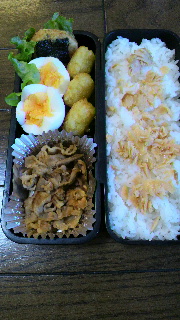ちっとも先輩らしくないけど2年の息子は応援だけなんで、お弁当も気楽に生姜焼きです。