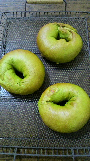 ホワイトチョコ入りの抹茶ベーグル焼きました