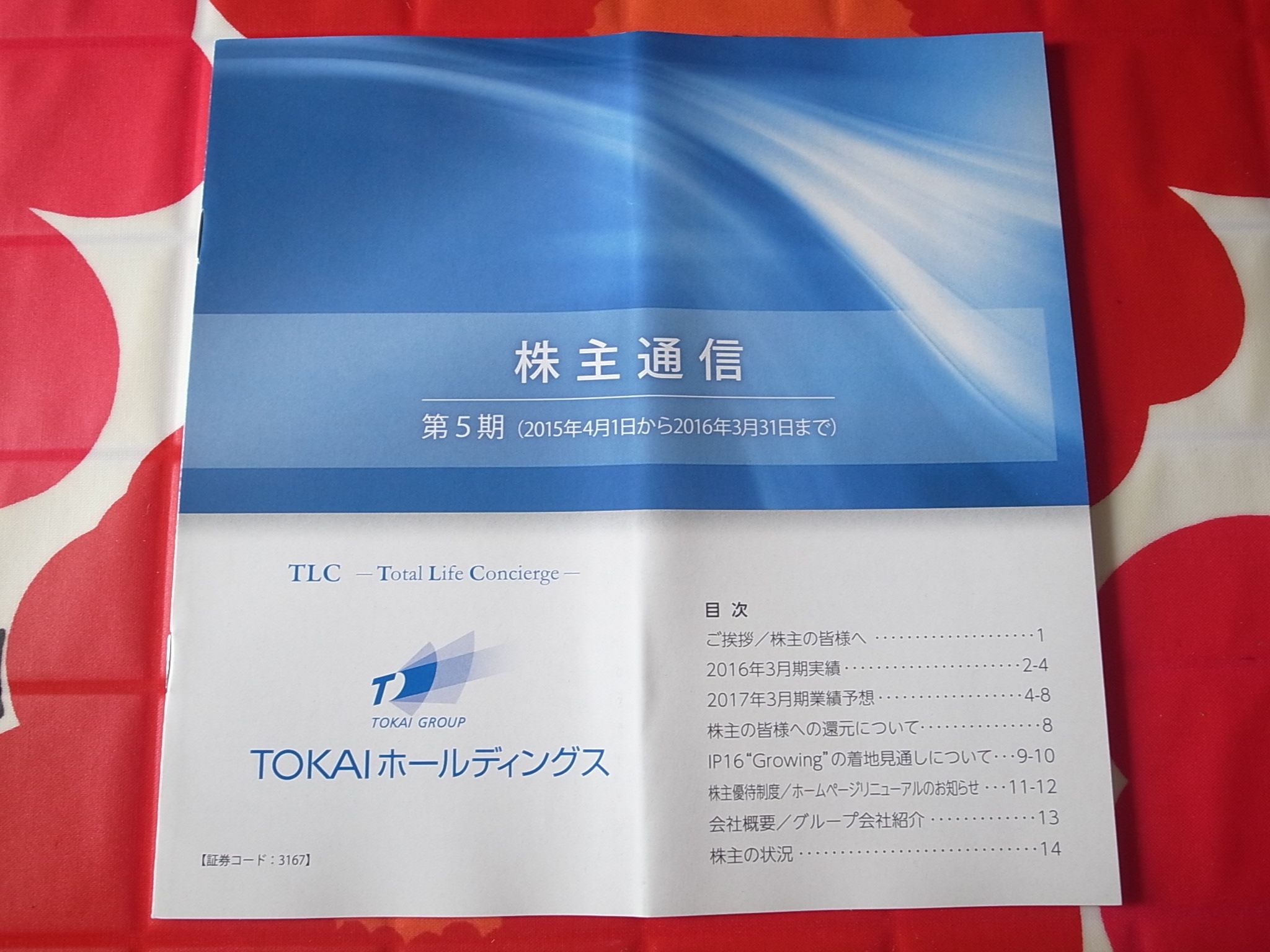 さて今日は2017PF概況シリーズです。 512位 3167 TOKAIホールディングス (東1、3・9月優待) 〇 PF512位は、東海地盤でLPガスのザ・トーカイとCATV等のビック東海が11年4月に経営統合して誕生したTOKAIホールディングスです。 現在の株価は830円、PBR1.89、株主持分比率は34.5%、今期予想PER17.85、配当利回り3.4%(28円)、総合利回り4.6%(28+10=38円、優待はクオカードを選択した場合で計算)で、優待は年2回下記の通りです。 私は最近は毎回クオカードを選択しています。 TOKAIホールディングスは指標的な割安感はありませんが、総合利回りが高くPF下位としては十分に良い銘柄です。これからも現行の優待制度が続く限りはホールドしていく予定です。