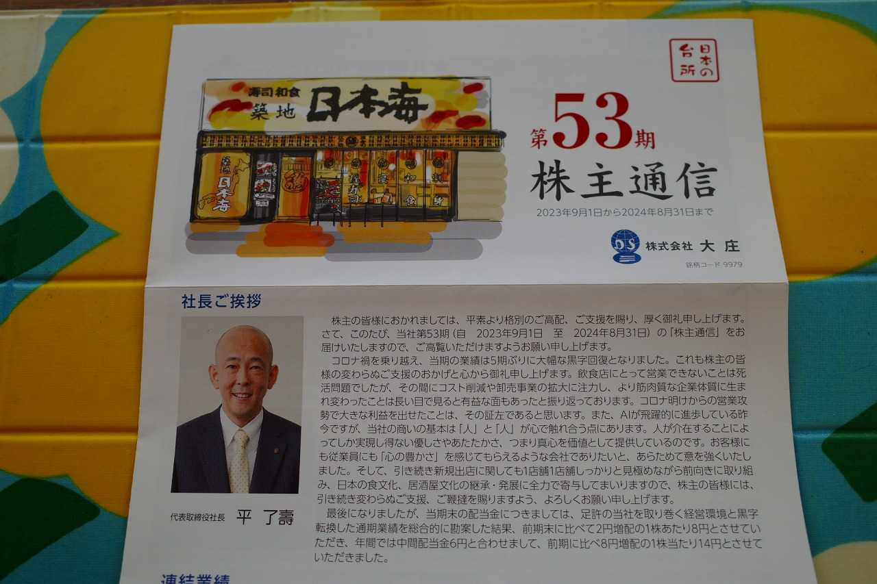 さて今日は通常の2021~25PF概況シリーズです。 609位 9979 大庄 (東S、2・8月優待) △ PF609位は、居酒屋チェーン大手の大庄です。 現在の株価は1223円、時価総額259億円、PBR2.34、自己資本比率は37.3%、今期予想PER21.76、配当利回り1.1%(14円)、総合利回り5.1%(14+48=62円、優待券はメルカリ平均価格の額面の80%で換算)で、優待は100株保有で年2回3000円相当の優待飲食券です。以前は産地直送の特産品も選択できたのですが、新型コロナによる業績へのダメージで大庄が逝きそうになっていた時に飲食券のみとなりました。これはやむを得ないですね。 ちなみに以前の特産品優待の中では、私は やまと豚 ロース肉味噌漬け が大好きでした。 味噌がお肉の底まで滲みていて、ご飯が無限にすすむ味だったんですね。🎵 さて大庄は土俵際まで追い込まれたコロナショックから何とか立ち直り、今は「見れる業績」に戻っています。私もホルダーとして一安心と言う所ですね。