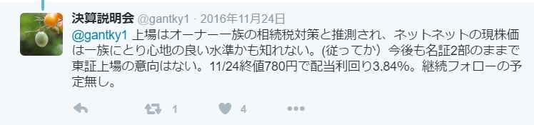 水準の株価を上げるインセンティブが会社側に全くないということになり、将来の東証昇格や優待新設はほとんど期待できないということになります。ま、いずれにせよ現在の丸八がバリュー投資家的な観点から見て驚異的に魅力的であることには変わりはありませんし、現時点ではホールド継続の予定です。。。