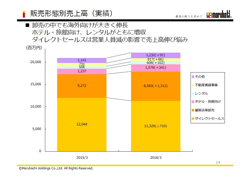 ダイレクトセールス、つまり営業マンによる訪問販売が売上の半分を占めています。