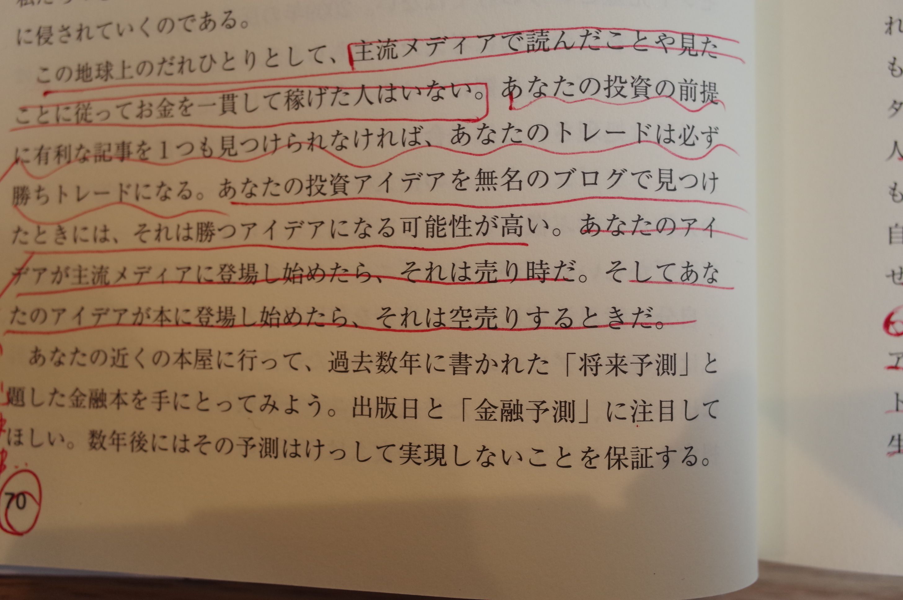 この地球上のだれひとりとして、主流メディアで読んだことや見たことに従ってお金を一貫して稼げた人はいない。。。あなたの投資アイデアを無名のブログで見つけた時には、それは勝つアイデアになる可能性が高い。 あなたのアイデアが主流メディアに登場し始めたら、それは売り時だ。そしてあなたのアイデアが本に登場し始めたら、それは空売りする時だ。