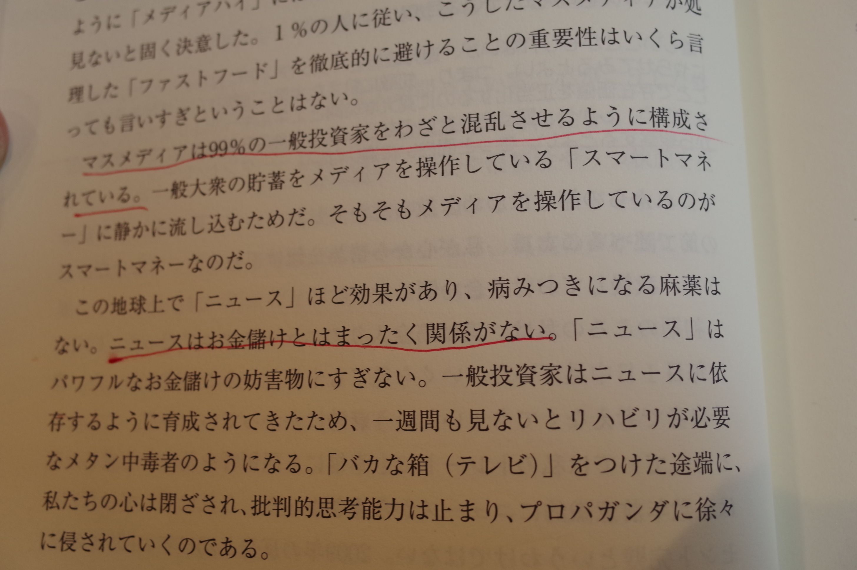 マスメディアは99%の一般投資家をわざと混乱させるように構成されている。一般大衆の貯蓄をメディアを操作している「スマートマネー」に静かに流し込むためだ。 。。ニュースはお金儲けとはまったく関係がない。