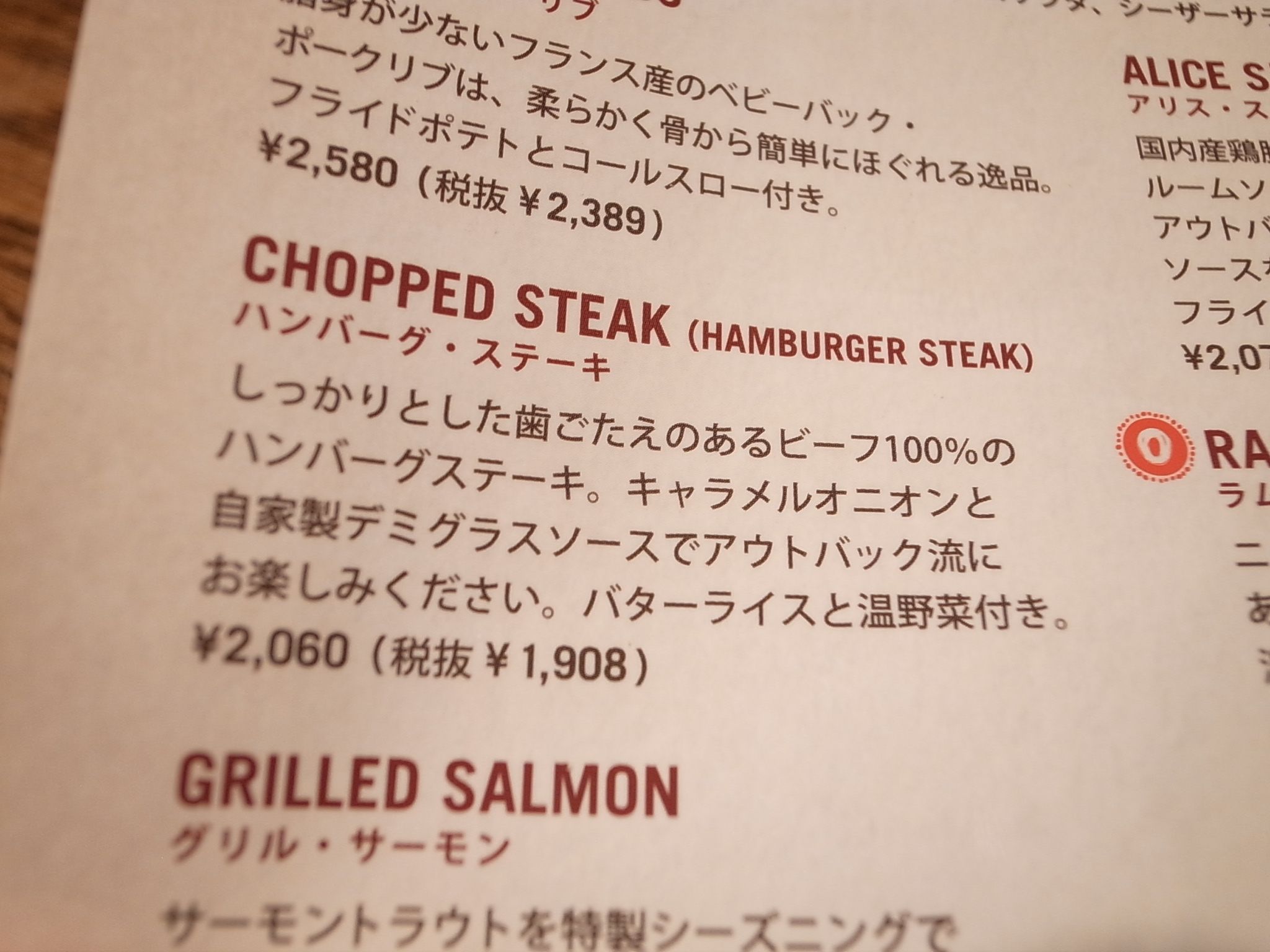 それではアウトバックステーキハウスの実際を見ていきましょう。