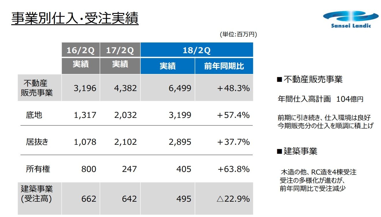 実際、相続税大増税による事業環境の良化を受けて、今期は前期に引き続きかつてないほどに仕入れが順調でその点でも大きな安心感があります。何故かというと、サンセイランディックには長年の経験とノウハウがあるので、仕入れた物件に関しては「ほぼ利益になる」からです。実際IRも 「仕入れに関しては一定の利益率を設定しており、それに基づいて買っている。」