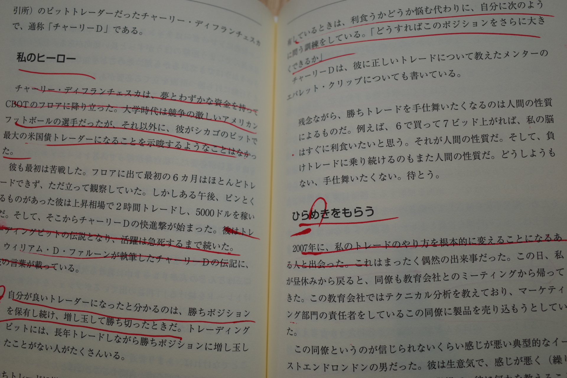 、、、ある午後、ピンとくるものがあった彼は上昇相場で2時間トレードし、5000ドルを稼いだ。そこからチャーリーDの快進撃が始まった。彼はトレーディングビットの伝説となり、活躍は急死するまで続いた。