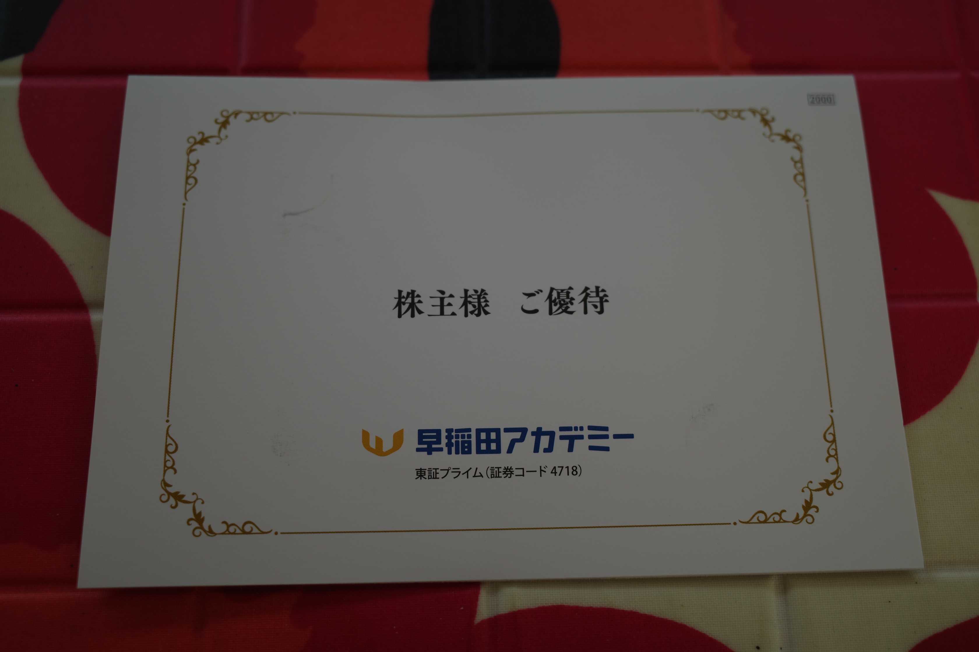 早稲田アカデミーは優待が手厚くてしっかりとした総合利回りが出ていますし、PF中位としては良い銘柄と思っています。