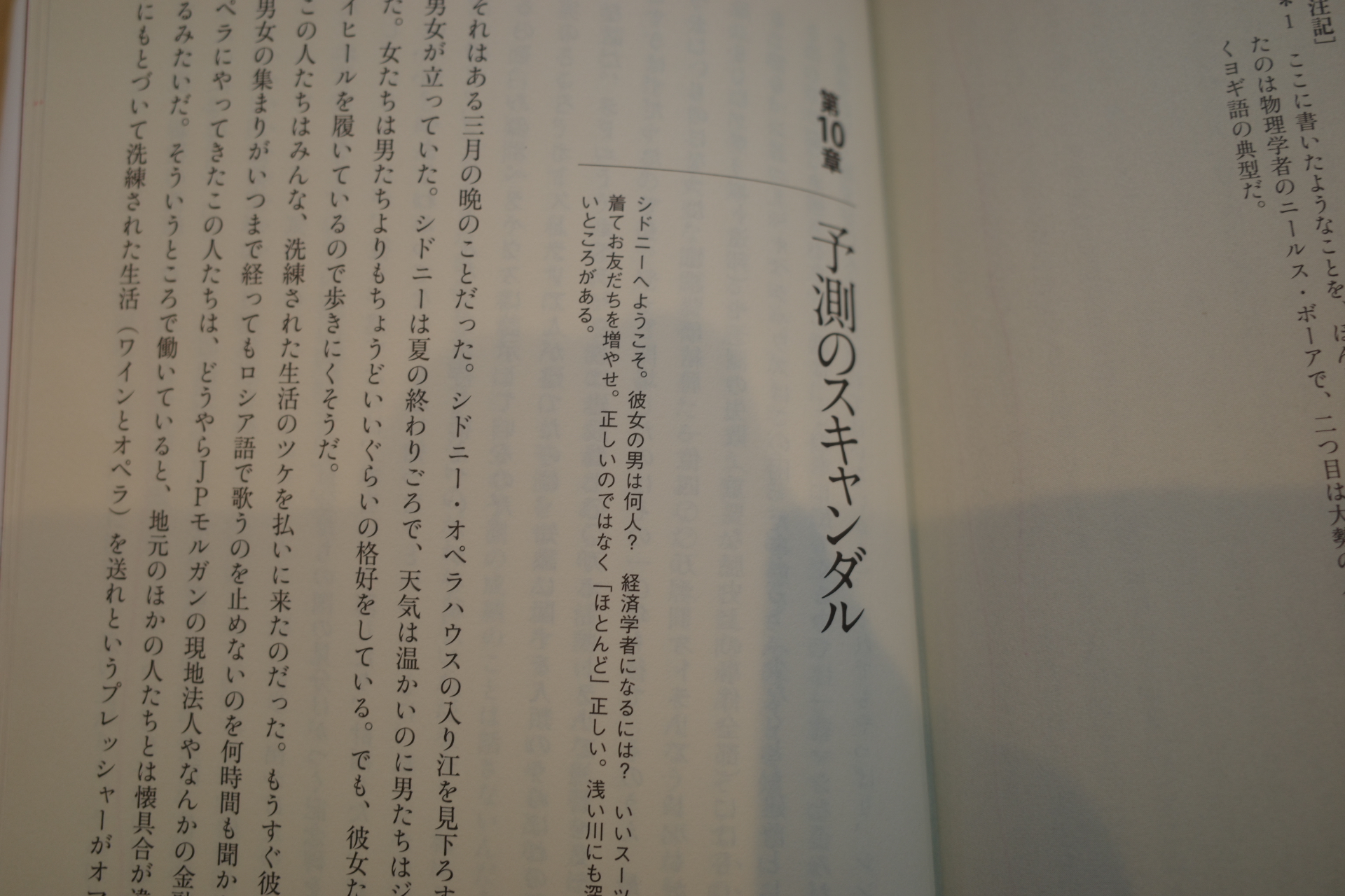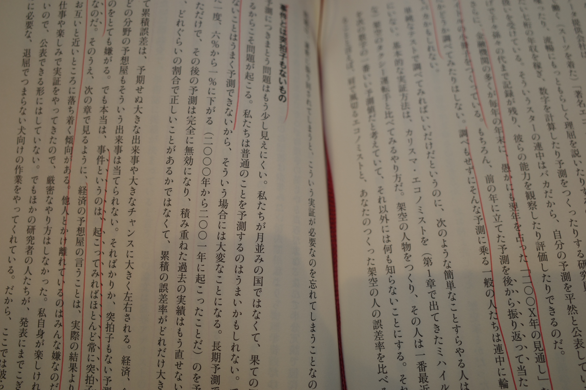 事件というのは、起こってみればほとんど常に突拍子もないものなのだ。そのうえ、次の章で見るように、経済の予測屋の言うことは、実際の結果よりも、むしろお互いと近いところに落ち着く傾向がある。他人とかけ離れているのはみんな嫌なのだ。