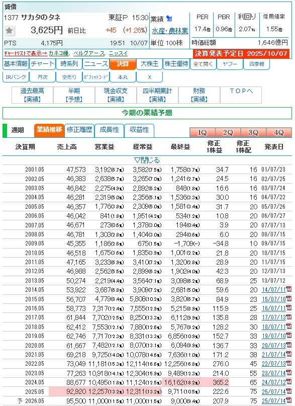 91位 1377 サカタのタネ(東P、5月優待) ◎